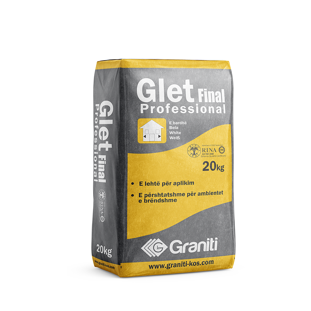 Glet Final je cementni prah koji se dodatkom vode pretvara u pastu vrlo dobre obradivosti pogodnu za gletanje u unutarnjim prostorima. Klasificira se kao mort tipa GP CS II, W0 prema EN998-1