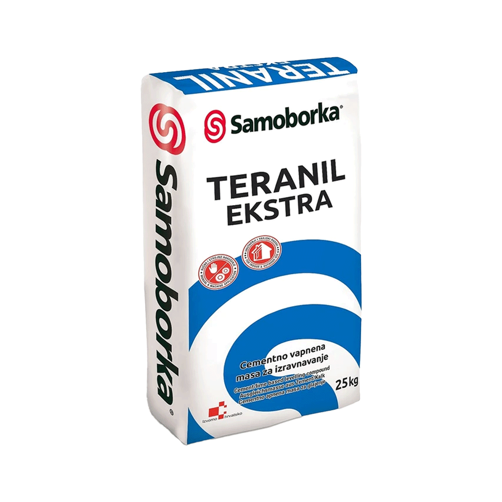 SAMOBORKA TERANIL EXTRA je visokokvalitetna polimer-cementna masa za završnu obradu zidova i stropova. Koristi se za fino zaglađivanje unutarnjih i vanjskih površina prije bojanja ili drugih završnih radova. Ova masa omogućuje glatke, ravne i estetski privlačne površine uz jednostavnu primjenu i dugotrajnu otpornost.